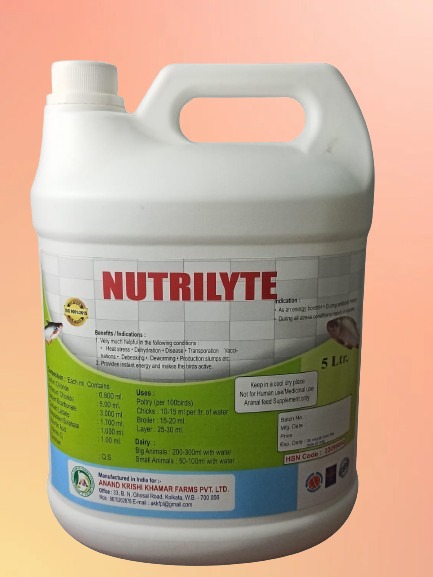 NUTRILYTE is a highly effective veterinary electrolyte and energy supplement formulated to restore hydration and maintain electrolyte balance in livestock. Enriched with essential salts, minerals, and energy boosters, it helps prevent dehydration, supports recovery from stress, heat, and illness, and enhances overall metabolic function. Ideal for cattle, poultry, and other farm animals, NUTRILYTE improves stamina, promotes faster recovery, and ensures healthier, more active, and productive livestock.