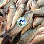The Rohu, Rui, Ruhi or Roho labeo (Labeo rohita) is a species of fish of the carp family, found in rivers in South Asia. The rohu is an important aquacultured freshwater species in South Asia. When cultured, it does not breed in lake ecosystems, so induced spawning is necessary. It is a large omnivore and extensively used in aquaculture. The rohu is a large, silver-colored fish of typical cyprinid shape, with a conspicuously arched head. Adults can reach a maximum weight of 45 kg (99 lb) and maximum length of 2 m (6.6 ft), but average around 1⁄2 m (1.6 ft). The rohu occurs in rivers throughout much of northern and central and eastern India, Pakistan, Vietnam, Bangladesh, Nepal and Myanmar, and has been introduced into some of the rivers of Peninsular India and Sri Lanka, The species is an omnivore with specific food preferences at different life stages. During the early stages of its lifecycle, it eats mainly zooplankton, moving onto phytoplankton in later stages of life. Rohu are herbivorous column feeders, eating mainly phytoplankton and submerged vegetation. It has modified, thin hair-like gill rakers, which it uses to feeds by sieving the water.